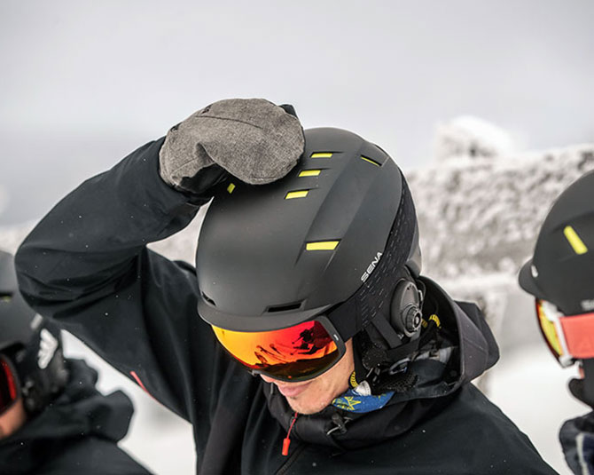 The sleek and versatile Latitude combines the safety of a snow helmet with Sena’s Bluetooth® Intercom technology. The speakers and a microphone are built right into the ear pads, so you can communicate with up to three other Sena Bluetooth headsets via Bluetooth intercom, all without the need for any cell phone/data connections! With phone pairing ability and compatibility with smartphone apps, this lightweight snow helmet is feature-packed and looks right at home on a snowboarder or skier's head.