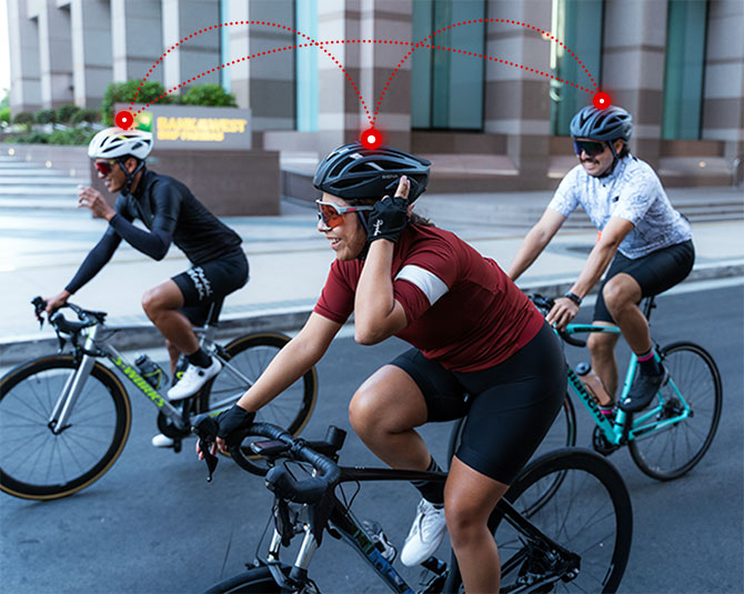 The R2 is an aerodynamic Smart Cycling Helmet designed for road cyclists. The R2 features a Bluetooth® Intercom communication system for rider-to-rider conversation, plus smartphone pairing for music, GPS, cues from fitness apps, and more. The R2’s impressive feature set is a nod to Sena’s original R1 smart helmet, but the R2 takes things to the next level with a new design and an integrated taillight.