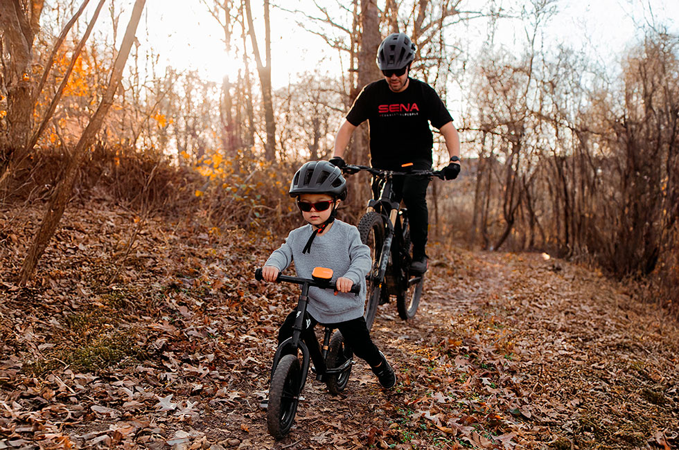 Thanks to Sena TALKIE devices, Chris has noticed a significant boost in his son’s confidence during their rides. Chris also relies on Sena M1 helmets to communicate when riding with fiends and listen to music when riding solo while still being able to hear his surroundings.