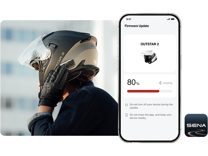 Actualiza tu OUTSTAR 2 al firmware más reciente sin esfuerzo gracias a la función Over-The-Air (OTA) a través de la aplicación Sena Motorcycles. Mantente al día con las nuevas funciones y mejoras de rendimiento, ¡sin necesidad de cables!