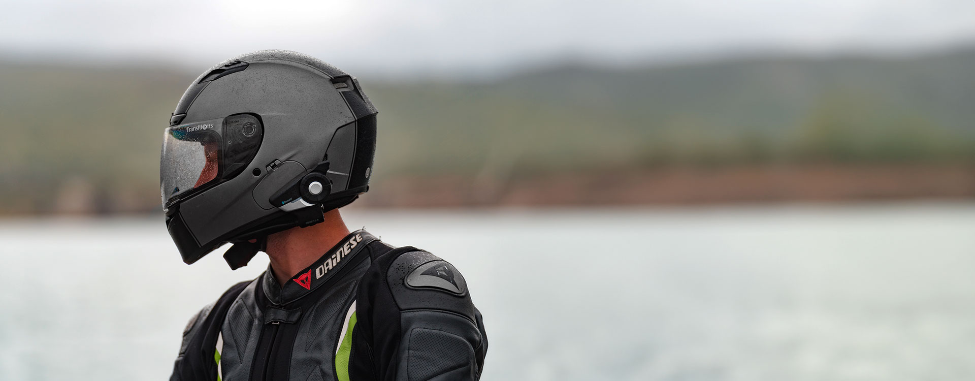 Control the headset with a Sena remote control accessory.